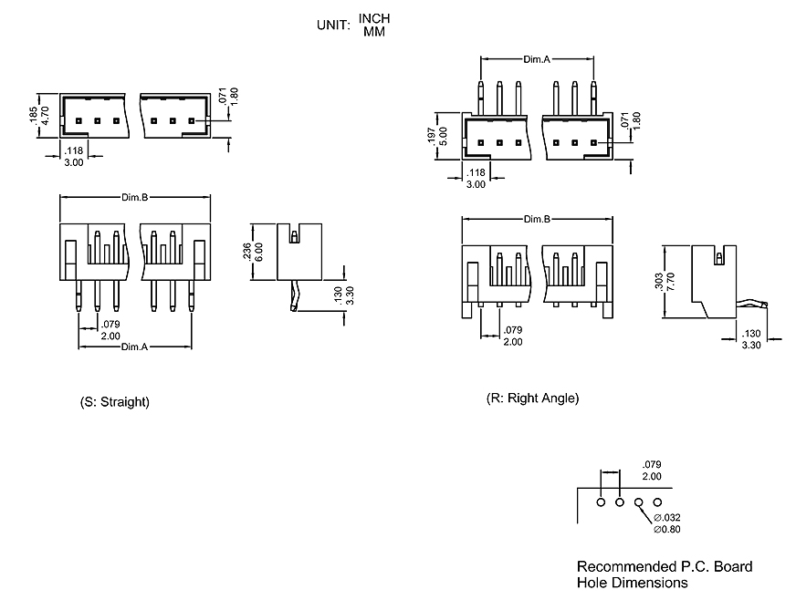* Applicable PC Board thickness: .063"[1.6mm]