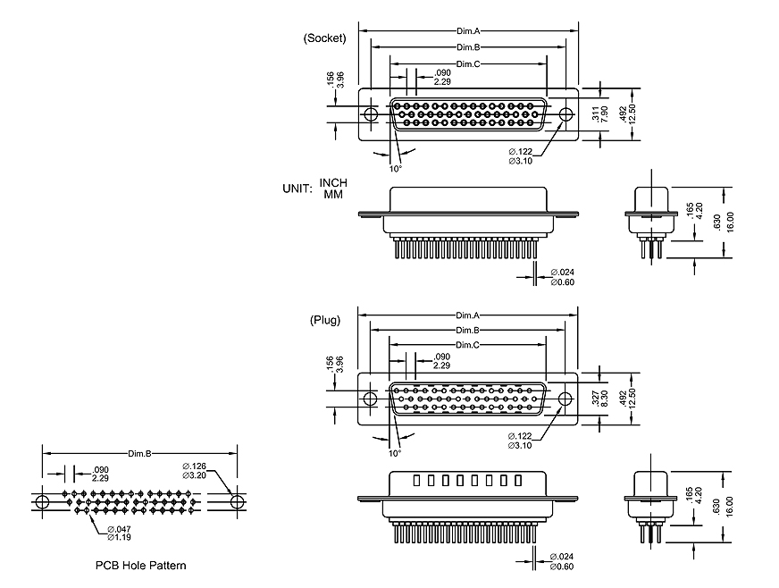 * Applicable P.C. Board thickness: .063"[1.6mm]