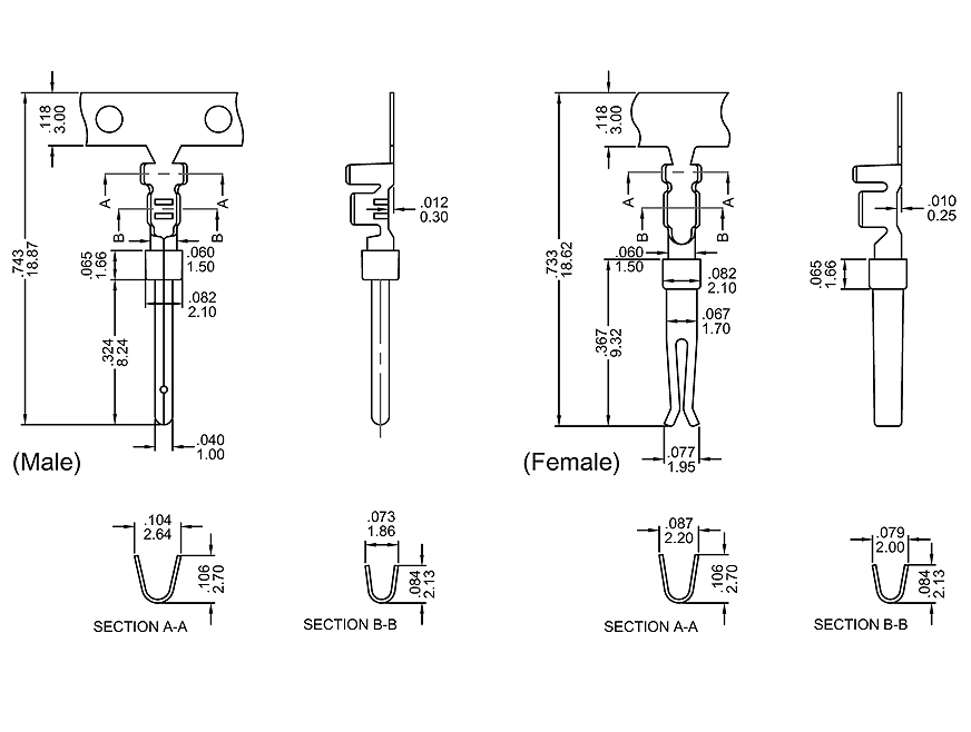 * Contacts: Phosphor Bronze. (Socket)