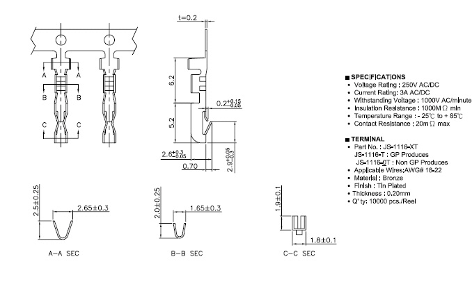 Applicable wires: AWG# 18-22 Material: ,Brass Finish:Tin plated