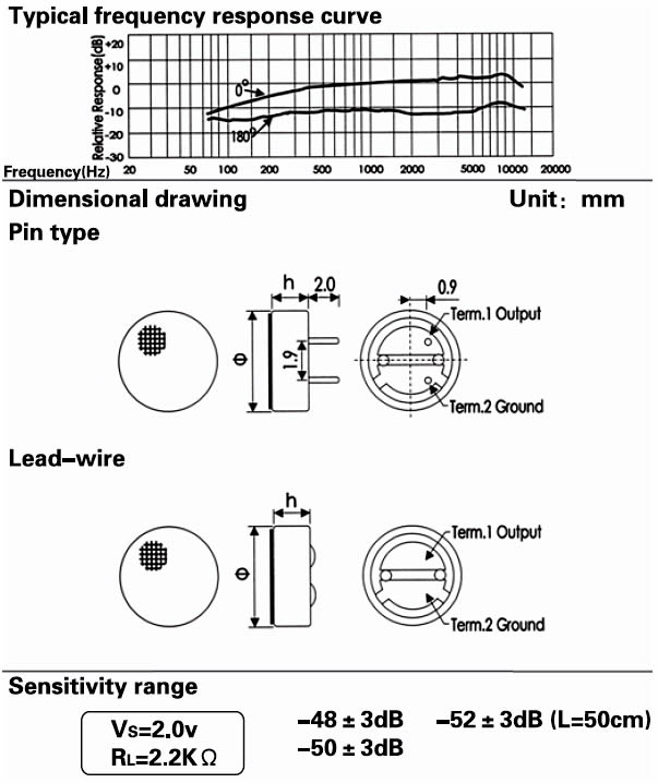 - Sensitivity: See above(0dB = 1v / Pa, 1kHz)
